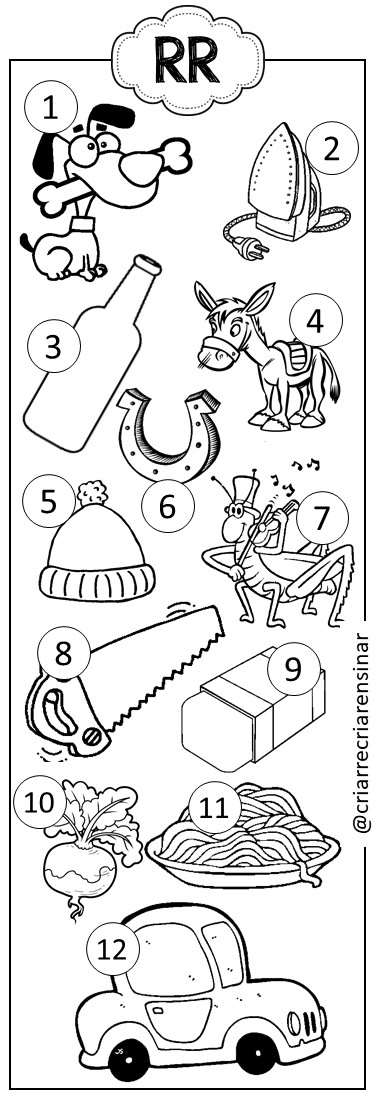 São fichas com figuras para que a criança possa realizar a escrita dos nomes. Normalmente, colo no canto da folha a ficha, do lado a criança escreve o número da figura e o nome.