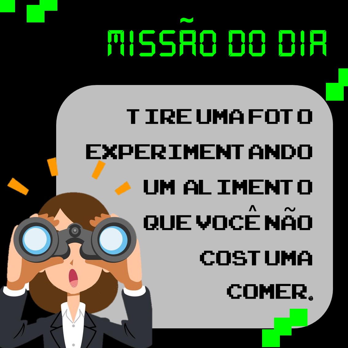 CADA DIA, ELES RECEBERÃO UMA MISSÃO, QUE PODE VARIAR DE ALGO BEM SIMPLES COMO DAR A RESPOSTA DE UMA PERGUNTA À FAZER UM VÍDEO IMITANDO UM ANIMAL. FAÇA UM COMBINADO COM A TURMA DE COMO VOCÊ QUER RECEBER ESSAS RESPOSTAS.