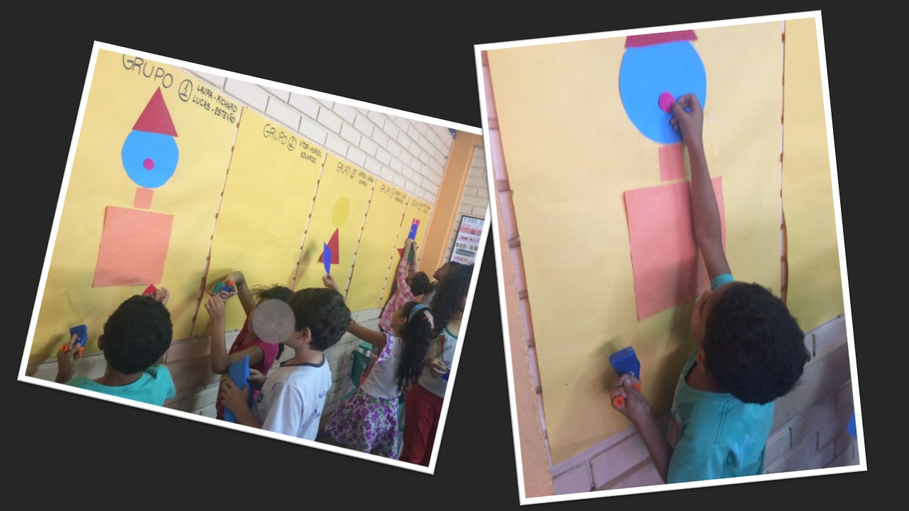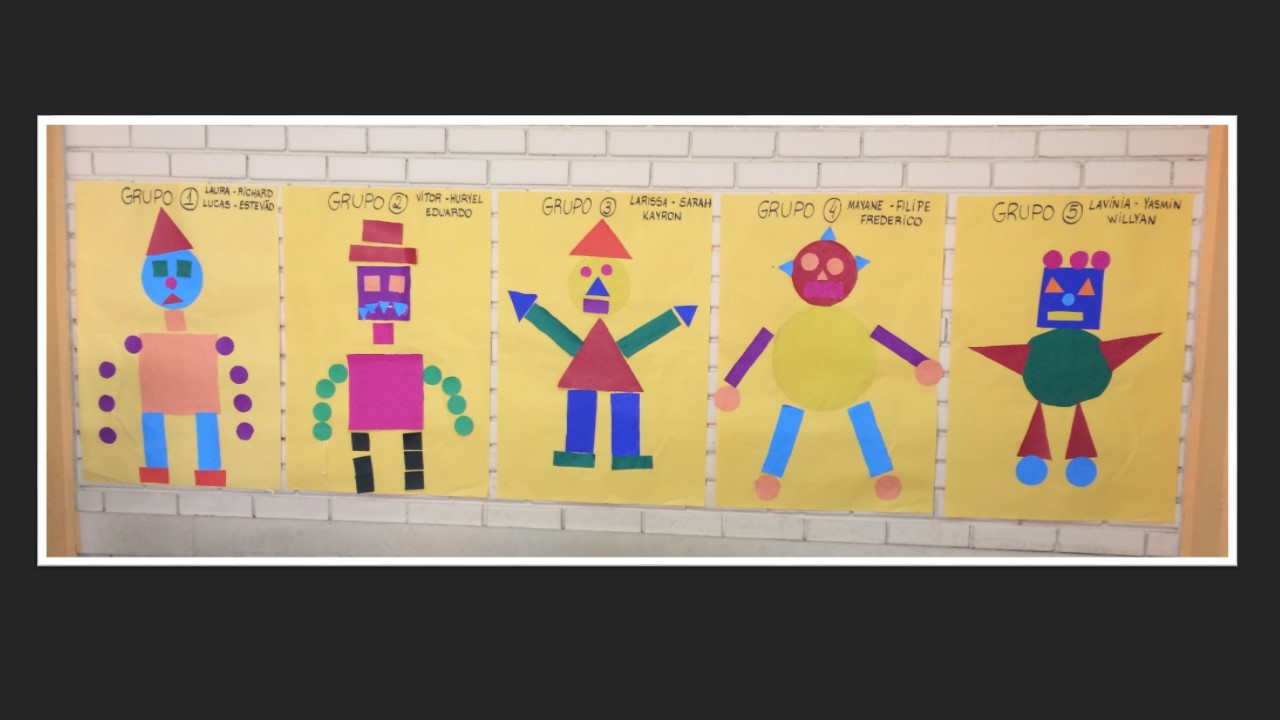CADA GRUPO RECEBEU OS PAPÉIS COM AS FORMAS RISCADAS E UM MODELO DE ROBÔ PARA REPRODUZIR.
