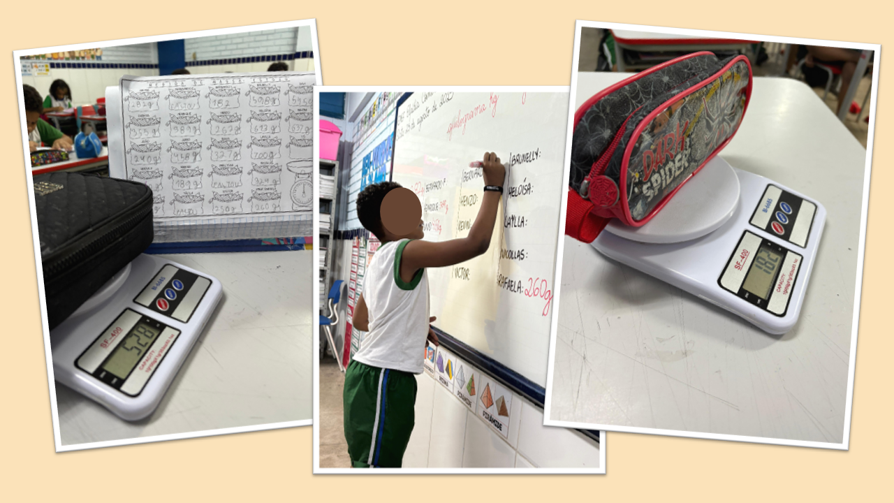 Estou trabalhando as medidas de comprimento e massa com meus alunos. Gosto de iniciar esse conteúdo com atividades práticas e que eles possam participar. Para as medidas de comprimento, gosto de medir a altura deles e registrar no caderno. Já as medidas de massa, para não causar nenhum desconforto, “pesamos” os estojos. Eles se divertem descobrindo quem tem o estojo “mais pesado” e o “mais leve”.