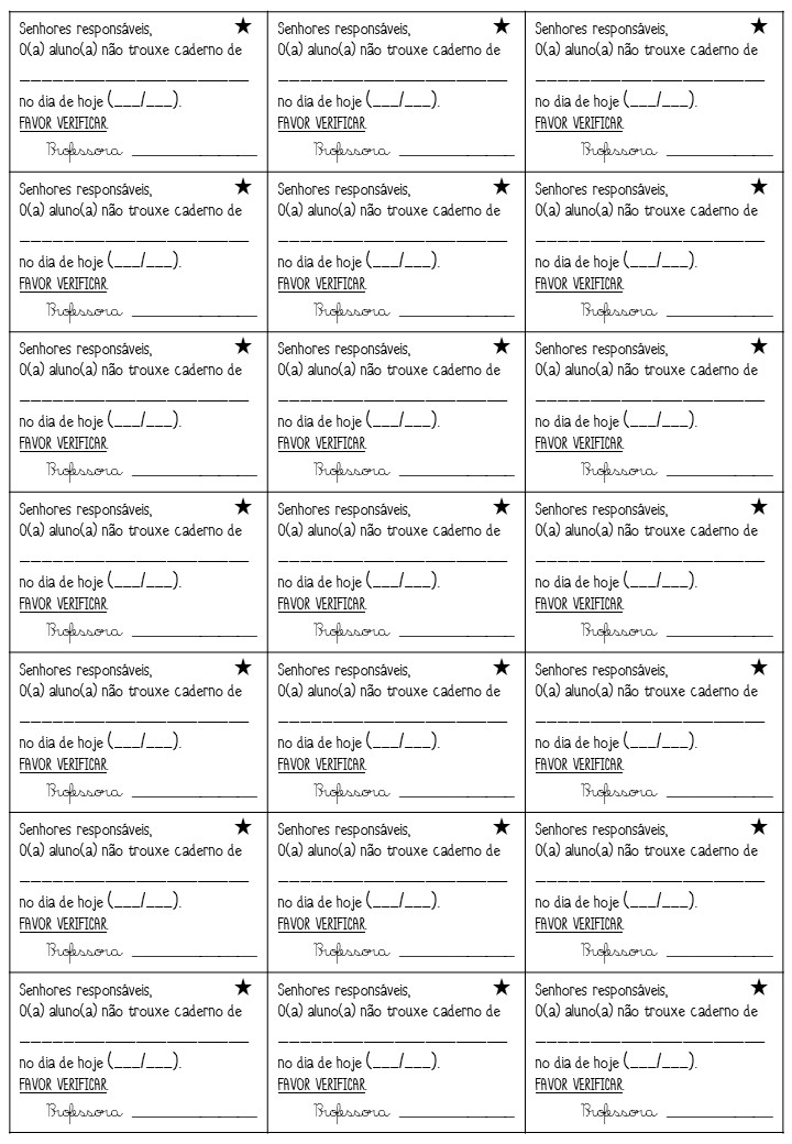 Na rotina de sala de aula, percebi que regularmente, anotava os mesmo recadinhos nas agendas. Para facilitar fiz esses mini recados.