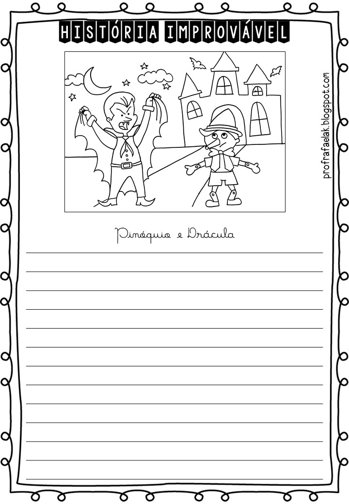 As fichas abaixo trazem figuras com cenas improváveis, misturando personagens clássico e cenários diferentes. O aluno pode usar toda imaginação e criatividade para criar histórias maravilhosas.