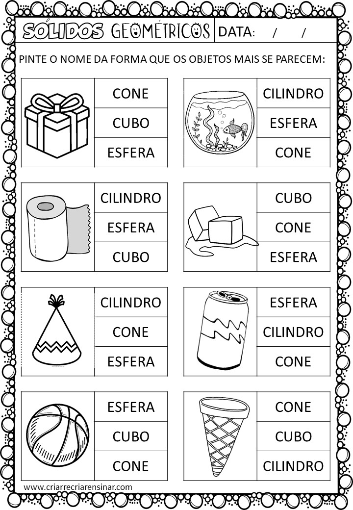 Ao começar esse conteúdo é interessante levar para as crianças alguns objetos para que elas possam comparar com as formas e analisar coletivamente suas características.
